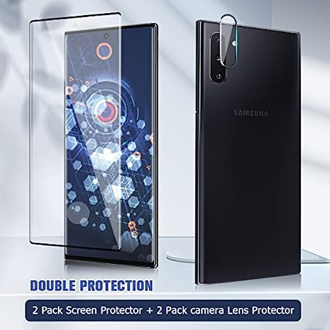 [2+2 Pack] Galaxy Note 10 Plus Screen Camera Protector, 9H Tempered Glass Scratch Resistant, Ultrasonic Fingerprint Support, 3D HD Curved, For Samsung Galaxy Note 10 Plus 6.8 Inch Glass Screen Protect