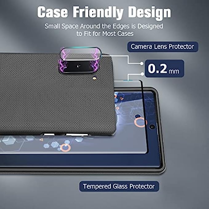 【Full Protective】: provide both Galaxy Note 10 Plus Tempered Glass screen protectors and Galaxy Note 10 Plus camera protectors, which will protect your phone from screen to camera all around. Offer full protection and double sercure.