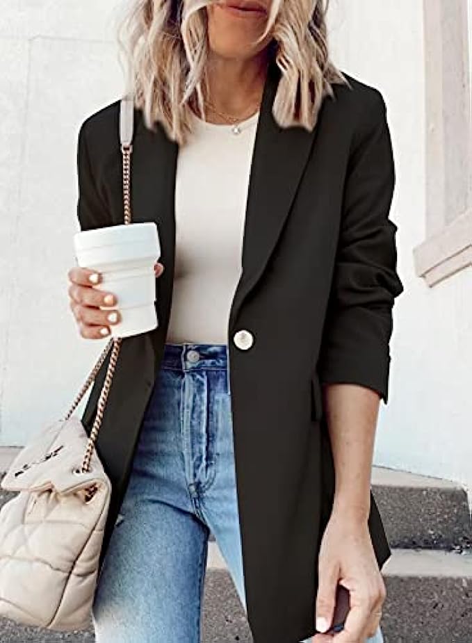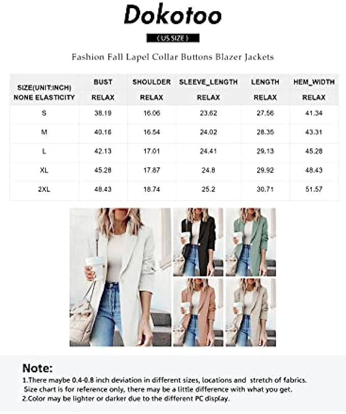 Dokotoo Womens 2022 Fashion Fall Lapel Collar Buttons Blazer Jackets for Women Business Casual
