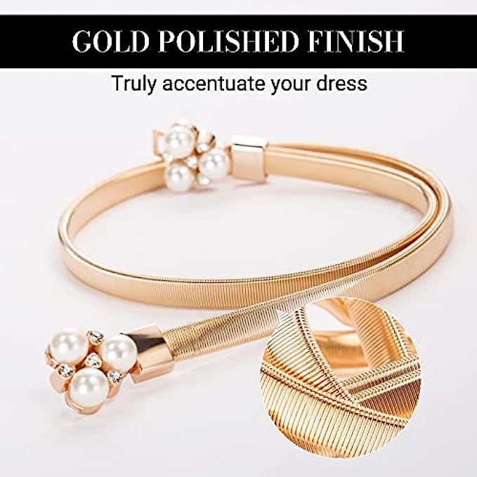 GRACE KARIN Women Skinny Metal Cinch Belt Gold Waistband Elastic Waist Belt CL633