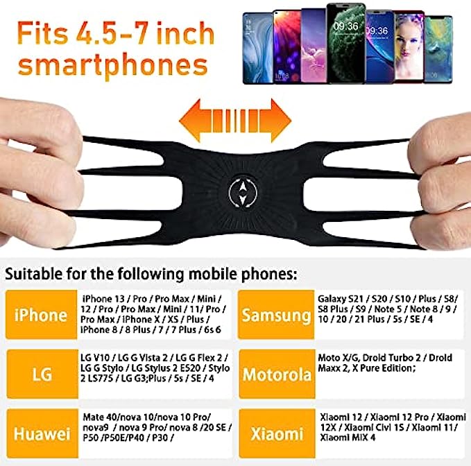 Suitable for 4.5-7 inch smartphones. Such as: 13 Pro / 13 / 13 Mini / 12 Pro / 12 / 12 Mini / 11 Pro Max / 11 Pro / 11 / XS / XS Max / XR / 8/8 Plus, Samsung S22/S22+/ S21 / S10 / S10 Plus / S10e / S9 / S9 Plus and other smartphones.