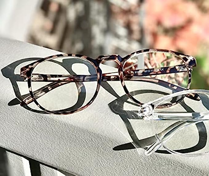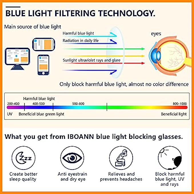 Plastic frame Plastic lens Non Polarized Lens width: 52 millimeters COMPUTER BLUE LIGHT GLASSES - Blue Light Filter Glasses: Bluelight blocker, anti 95-99% of harmful blue ray and discomfort from long periods of web surfing, TV, phone, tablet, computer screen, vedio, reading and working under fluorescent lights with UV400 reduction, reduce headache, fatigue & eye strain, help you sleep better BLUE LIGHT BLOCKING GLASSES - Transparent lens: No color difference. Anti scratch and explosion-proof, anti glare to protect your eyes in all direction, bring you good visual experience. The classic form is a good choice for fashion and stylish decoration, which can go with various features and hairstyles