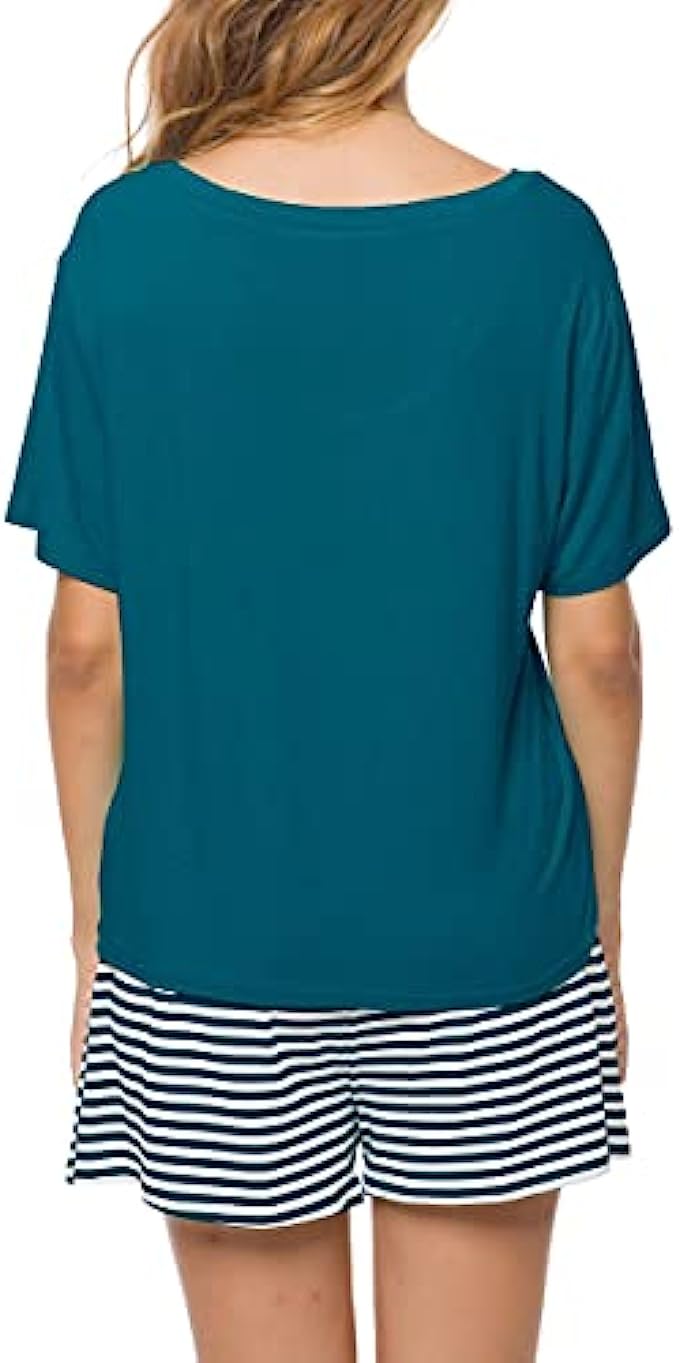 Invug Women Nightwear Short Sleeve Shirt and Shorts Pajama Set V Neck Sleepwear