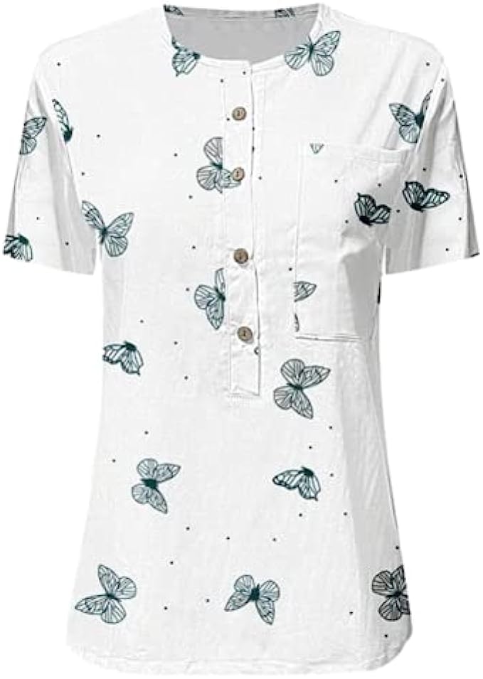 Ladies Summer Tops-Ladies Tops and Blouses-Short Sleeve Blouses for Womens Button Shirts-Womens Summer Tops