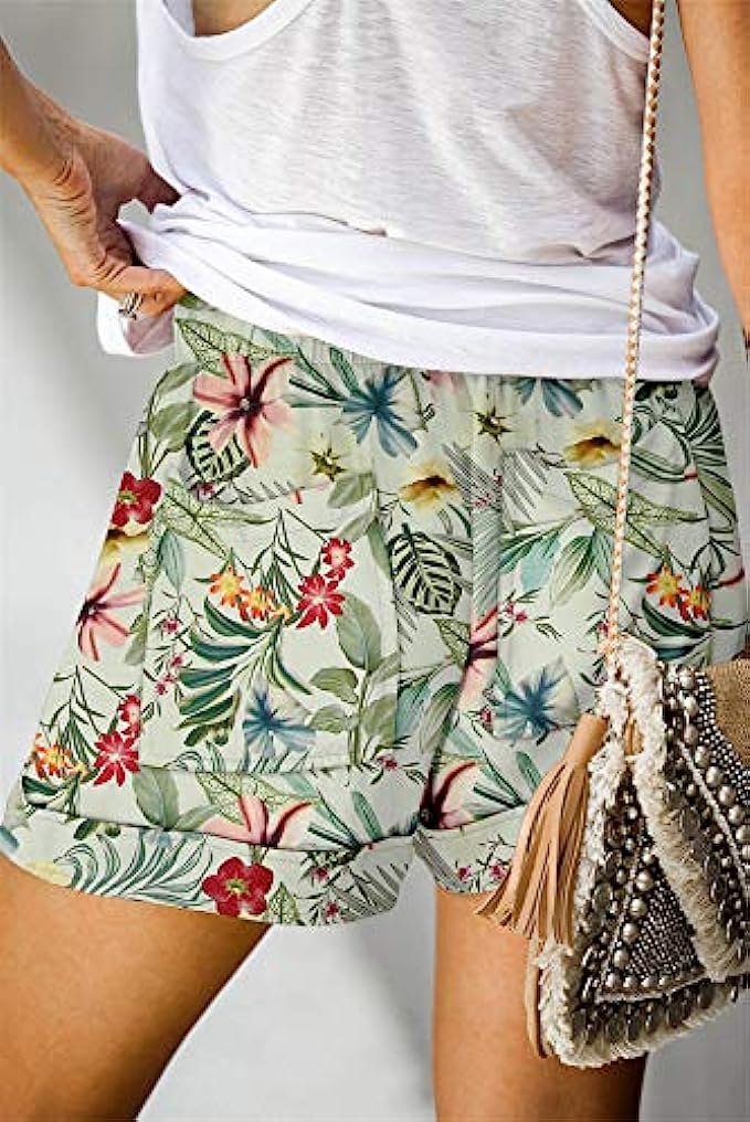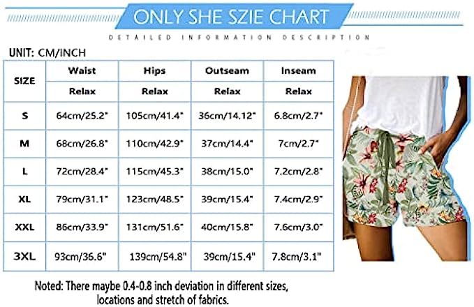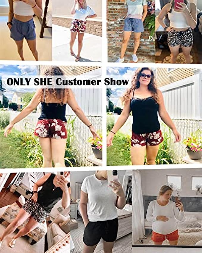 Women's Shorts:Solid: 35%Cotton+60%Polyester,Printed Shorts: 95%Polyester+5%Spandex,Lightweight fabric with a cozy elastic drawstring waist, keeps you soft all day.