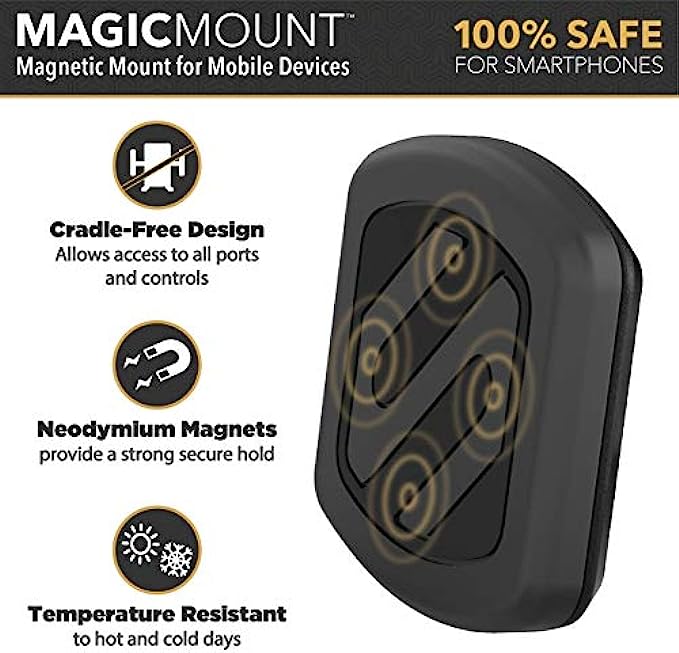 Magnetic Phone Holder - Comes with powerful Rare-Earth neodymium phone magnets that provide a secure grip to your iPhone, Android or Tablet. 100% mobile device safe. Simply stick the car mount magnet to the back of your phone case for a secure magnet hold.