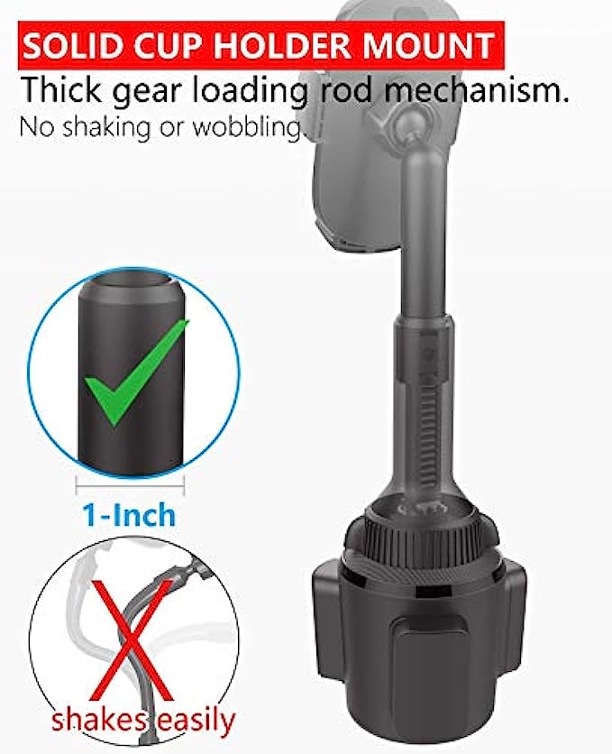 • Super Compatibility Cup Phone Holder for Car: Adjustable extension arm design is suitable for all iPhone & Andriod Cell Phones although with a thick case, iPhone cup holder for car compatible with iPhone 13 Pro Max, 13 Pro, 13 Mini, 13, 12 Pro Max, 12 Pro, 12 Mini, 12, 11 Pro Max, 11 Pro, 11, XS Max, XS, XR, X, 8 Plus, 8, 7 Plus, 7, SE (2022), SE (2020), SE, 6s Plus, 6s, 6 Plus, 6, 5s 5c 5 4S 4; cup phone holder for Google Pixel 6Pro 6 5a 5 4a 4XL 4 3aXL 3a 3XL 3 2XL 2 1, Nexus 6P 6 5X 5, etc