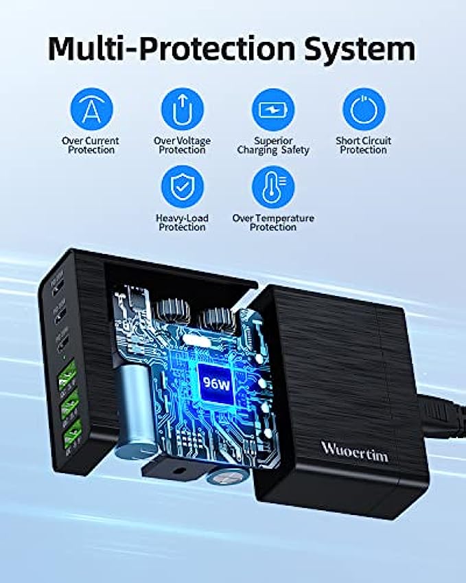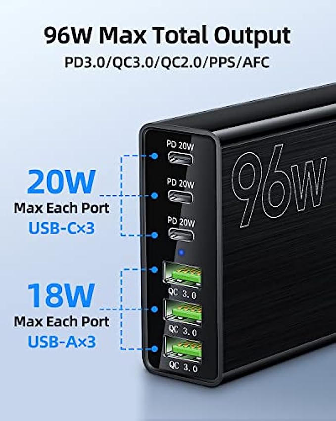 USB C Charger, Wuoertim 96W 6 Port USB C Charging Station, Portable Multiport USB C Wall Charger PD Fast Adapter with 3 USB-C Ports +3 USB-A Ports for iPhone 13 12 Pro Max, iPad Series, Samsung Galaxy