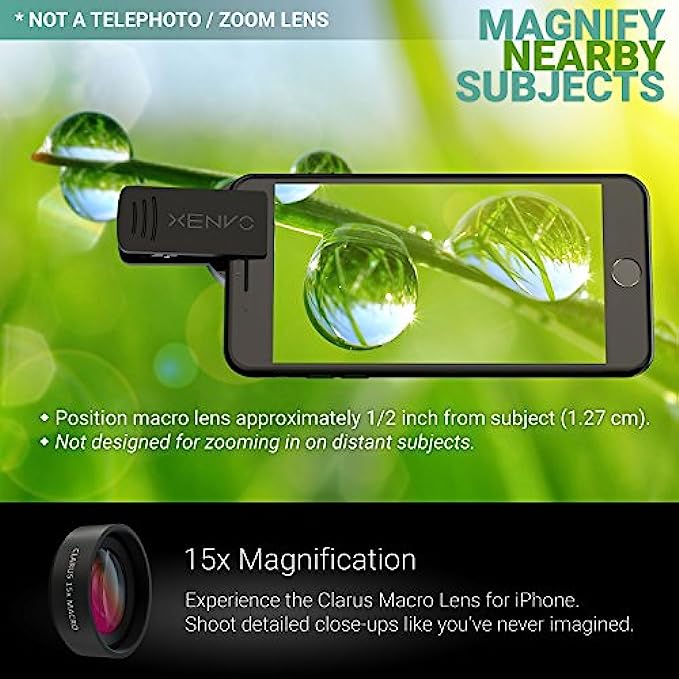 ✔ CLARUS 15x MACRO LENS - MARVEL YOUR SENSES. MAGNIFY NEARBY SUBJECTS FOR BREATHTAKING, SUPER CLOSE-UP PHOTOS: Capture all the intricacies and details with precision-focus for razor crisp macro photos every time. (For best results, position macro lens approximately 1/2 inch from subject. Not designed for zooming in on distant subjects.) THE TRUGRIP LENS CLIP offers SUPERIOR GRIPPING POWER to fasten your lenses to your cell phone when you're in action mode, framing your next perfect shot.