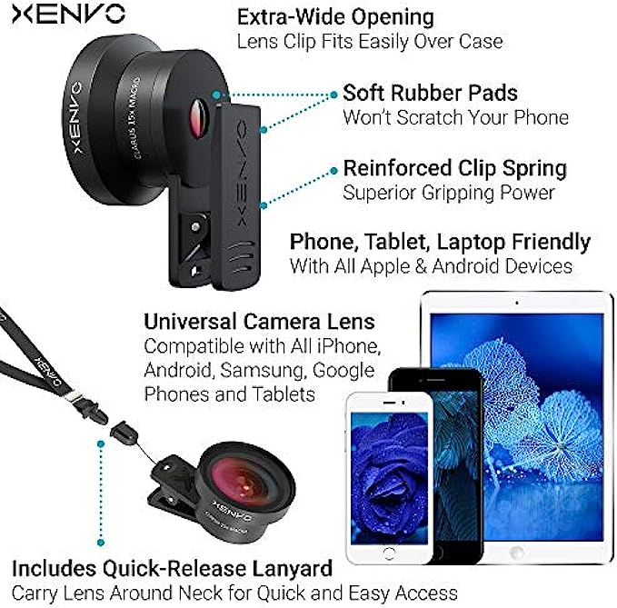 ✔ QUICK-RELEASE LANYARD AND TRAVEL CASE - TRANSPORT AND PROTECT YOUR LENS KIT: Perfect for taking your Xenvo lenses with you on the fly. The travel case stores and protects all lens kit components snugly and safely while the quick-release lanyard is the perfect way to carry your lenses on your next outing. Just drape the lanyard and lens around your neck. The quick-release lanyard head makes it a cinch to access your Xenvo lenses in a flash so you never miss another photo moment.
